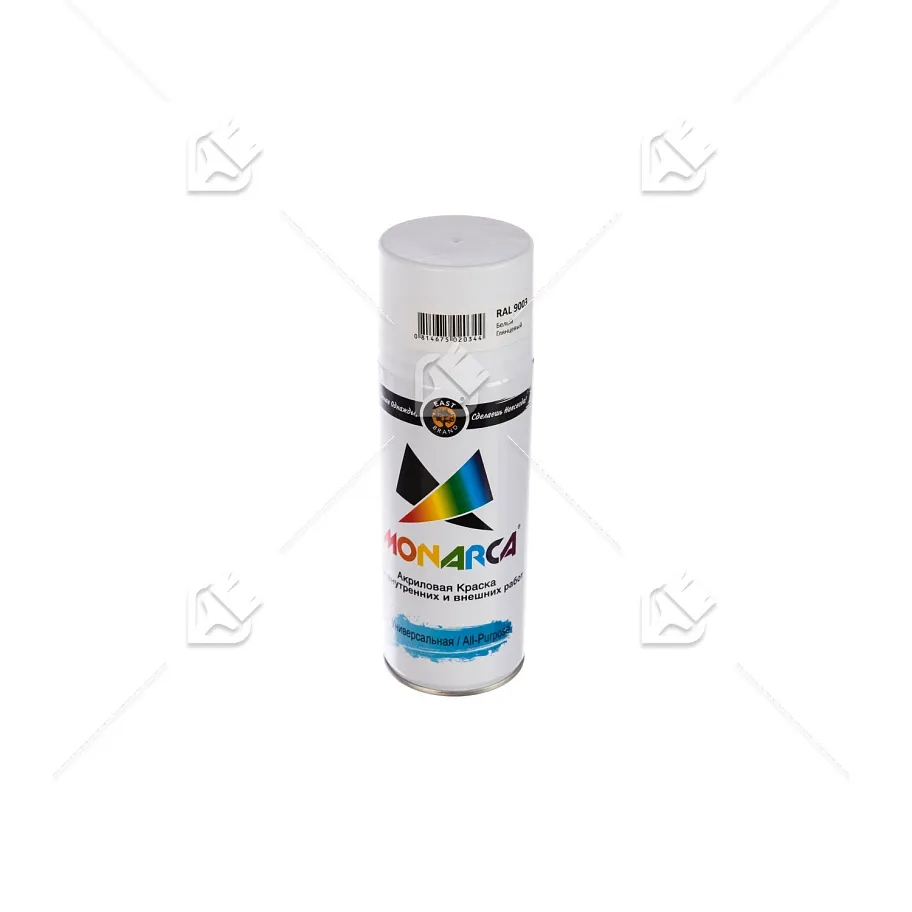 Краска универсальная аэрозольная акриловая Eastbrand Monarca глянцевая RAL 9003 белая 520 мл.